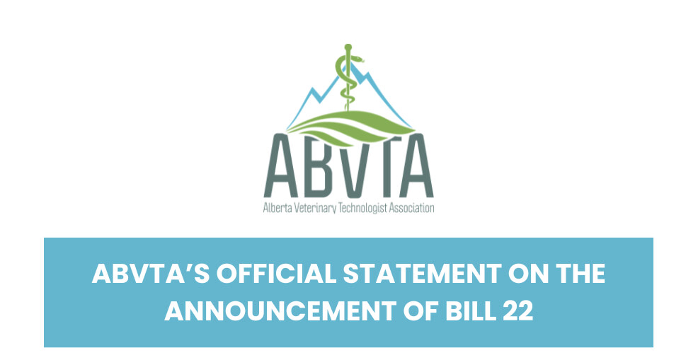 3/31/2026 - The Alberta Veterinary Technologist Association (ABVTA) is encouraged by the Government of Alberta’s announcement of Bill 22, which aims to modernize the Animal Protection Act for the first time in more than 20 years.